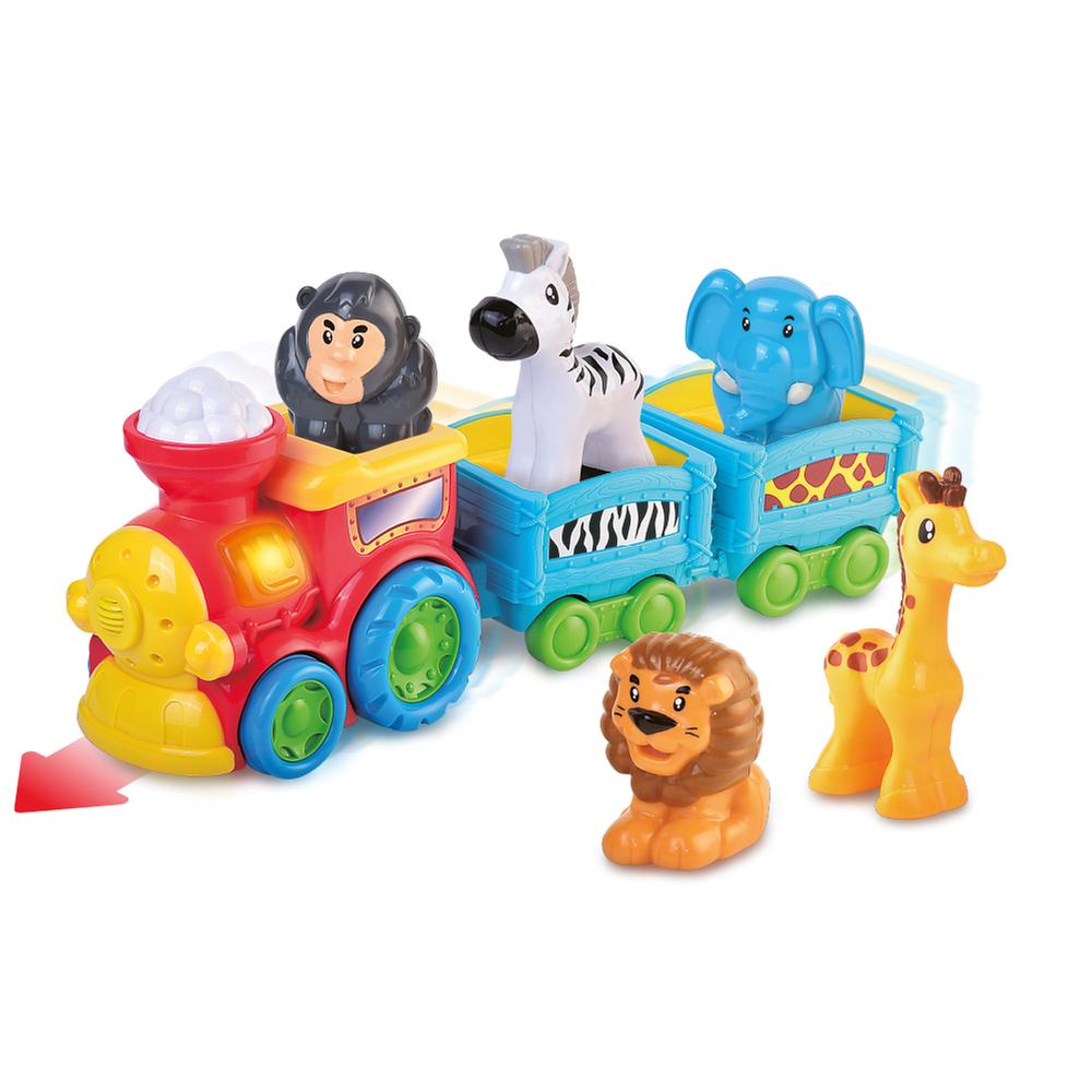 Cada momento será emocionantemente educativo con el Tren Musical de Animalitos de Baby Active. Es idóneo para que tus pequeños se entretengan mientras desarrollan su imaginación. Podrán tocar el botón de la locomotora para encender la luz o presionar las figuras para escuchar los sonidos. Además, ya viene con pilas para disfrutar una activa experiencia de juego y estimular sus habilidades motrices desde el primer momento.
