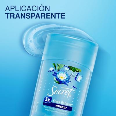 Frescura de agua pura con lirios: la protección invisible que actúa al instante para una sensación de limpieza impecable. Descubre la frescura ligera del desodorante antitranspirante Secret Waterlily. Su fórmula de aplicación transparente se absorbe rápidamente, protegiéndote contra el sudor y el mal olor sin dejar residuos blancos. Disfruta de un suave y delicado aroma a lirios que te acompañará todo el día, manteniéndote fresca y segura.
