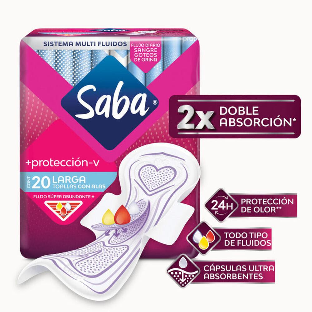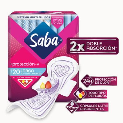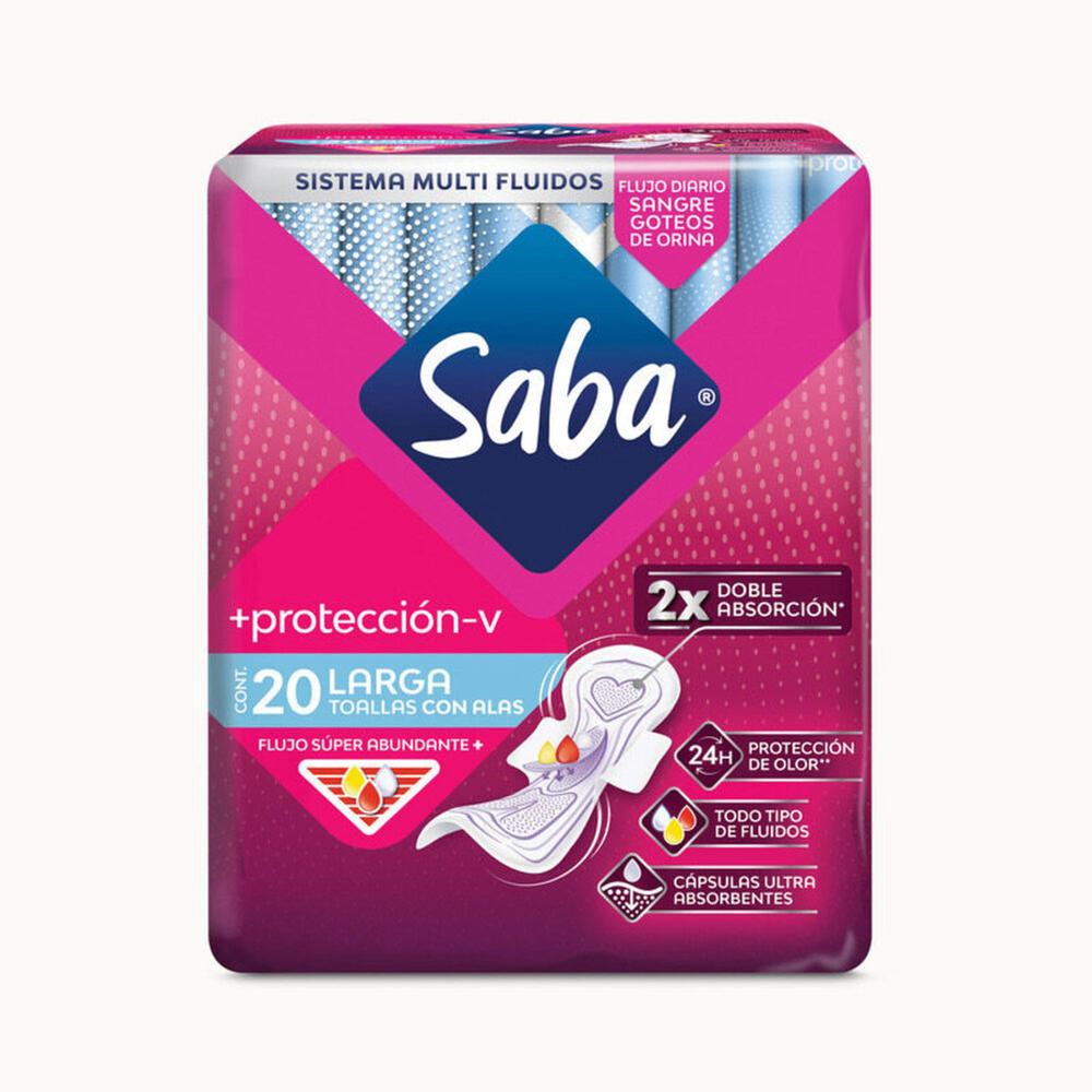 Toalla Femeninas Saba +Protección-V Larga 20 Piezas
