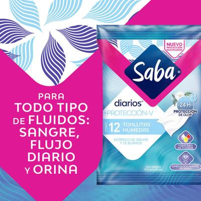 Toallitas Humedas Saba Diarios +Protección-V 12 Piezas