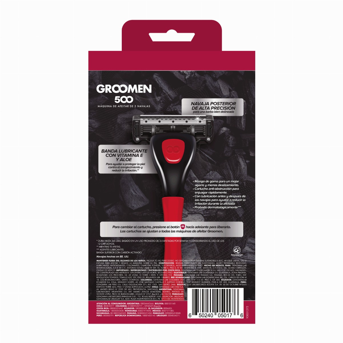 Luce una cara más suave y fresca después de afeitarte eliminando el vello de tu piel al ras con el Rastrillo Grommen 500, está fabricado con 5 cuchillas de acero con nanotecnología cerámica y una navaja posterior de alta precisión para un perfilado perfecto. Cuenta con 12 cartuchos que garantizan una duración de 30 días. Tiene doble lubricación que ayuda a evitar la irritación en el momento de la rasurada, con una banda superior con carbón activado y una banda inferior con vitamina E y Aloe. Además, cuenta con un mango antideslizante reforzado con goma, es reutilizable e intercambiable con cualquier otro cartucho groomen.