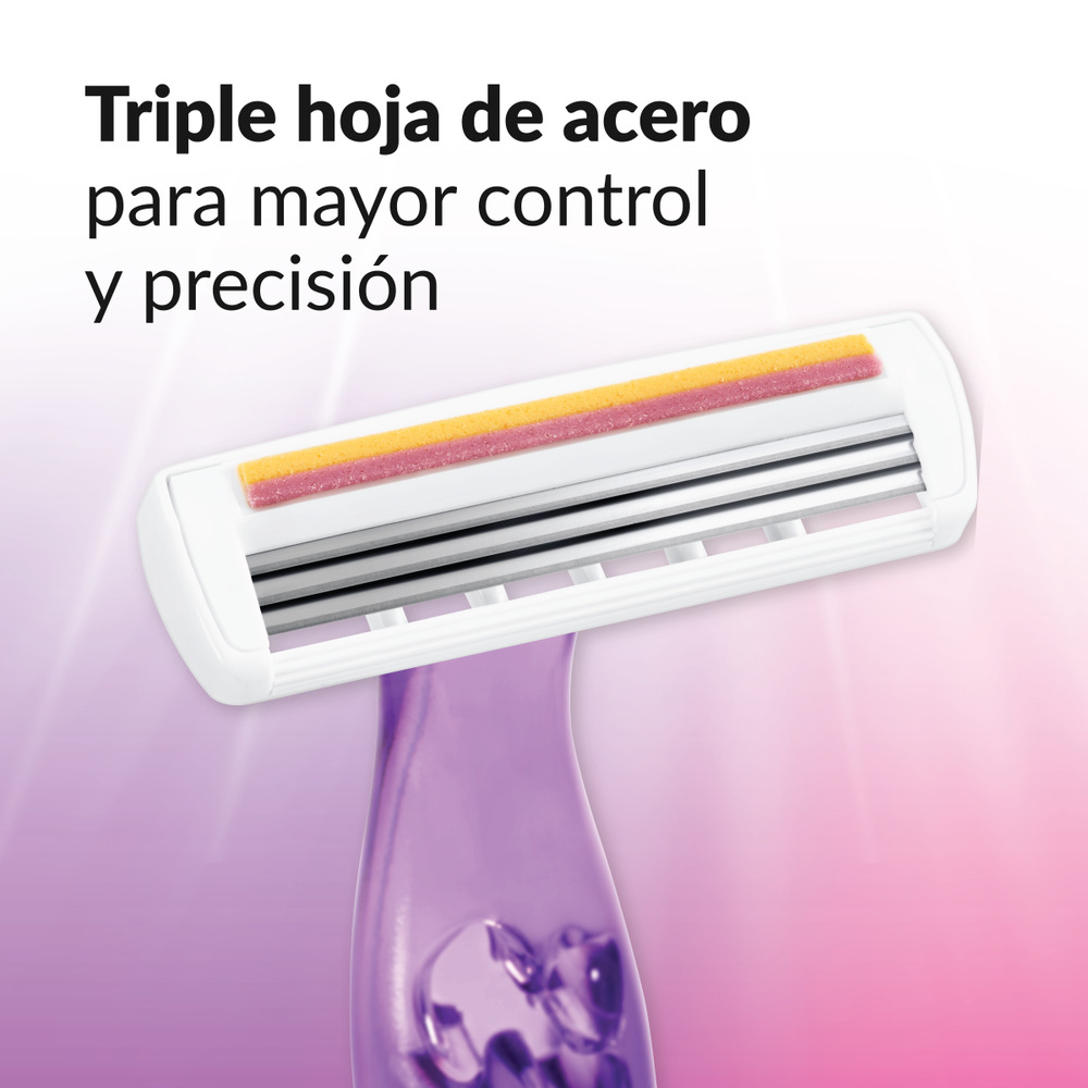 Obten una piel suave y tersa con los rastrillos desechables Bic Soleil, están especialmente diseñados para eliminar el vello no deseado de manera fácil y práctica. Tienen tres delgadas hojas que se deslizan sin dificultad sobre la piel, por lo que ayudan a evitar la irritación o las cortaduras accidentales. Además, cuentan con una cabeza móvil que garantiza un afeitado cómodo, silencioso y sin dolor.