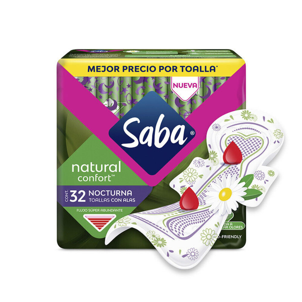 Toallas Femeninas Saba Natural Confort Nocturna Con Alas 32 Piezas