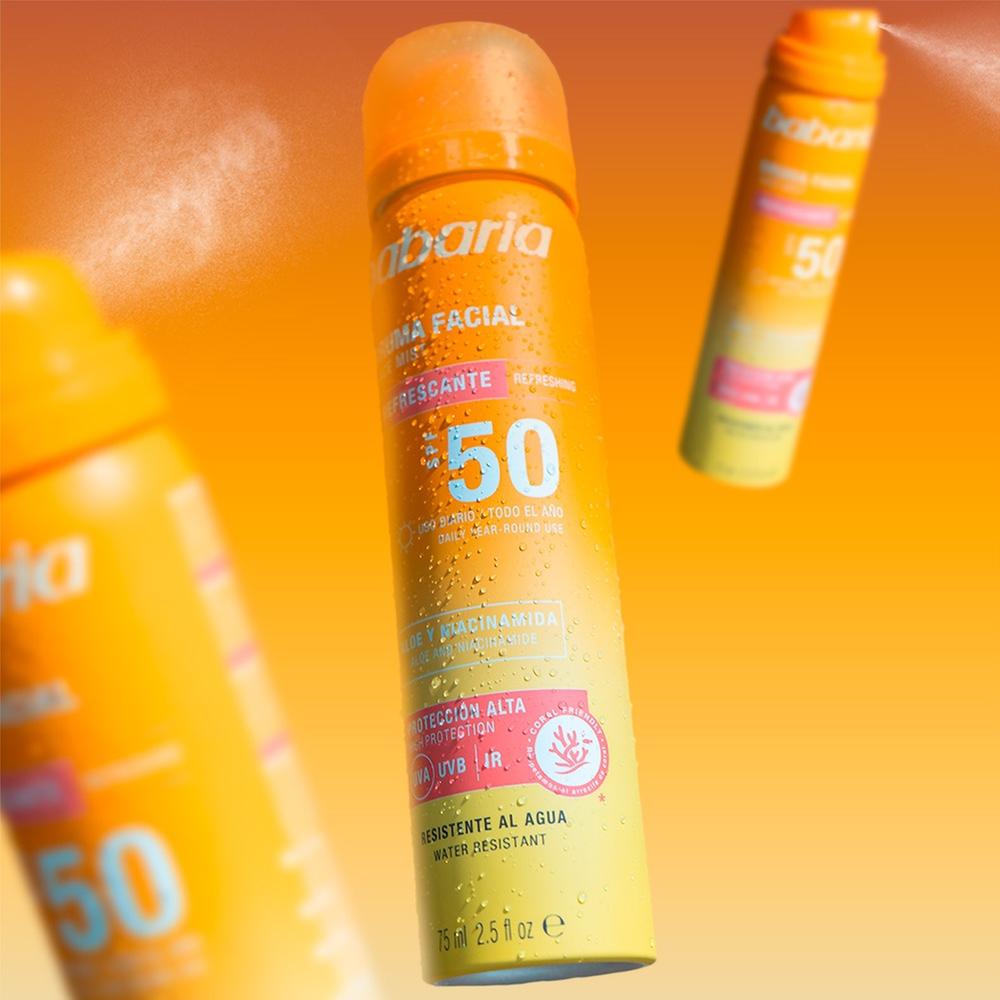 Protección solar que se siente como un soplo de frescura. Renueva tu defensa y tu glow en segundos, incluso sobre el maquillaje. La bruma solar facial con FPS 50+ ofrece una protección facial muy alta contra todo el espectro de luz (UVB/UVA/IR/HEV) en un formato de bruma ultrafina de 360º. Su aplicación es refrescante, de absorción inmediata y deja un tacto sedoso sin blanquear. Ideal para todo tipo de pieles, es resistente al agua y al maquillaje, permitiendo retoques fáciles en cualquier momento del día.