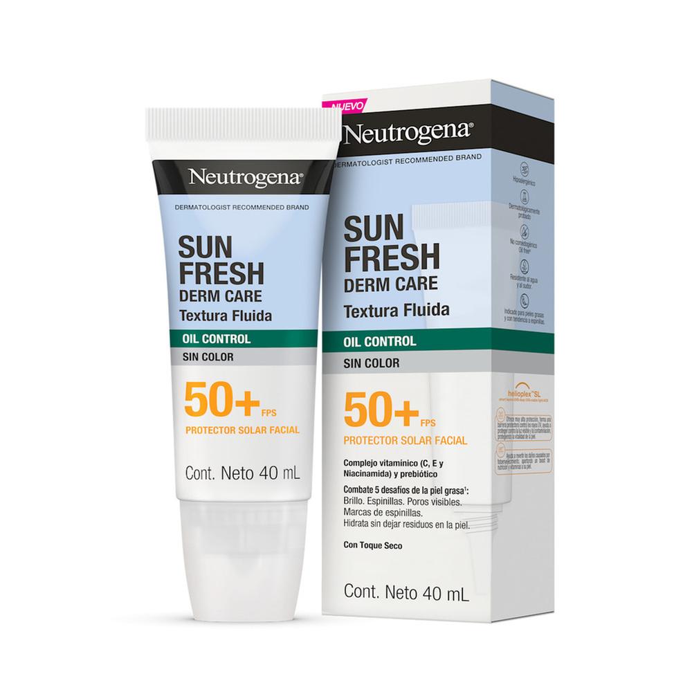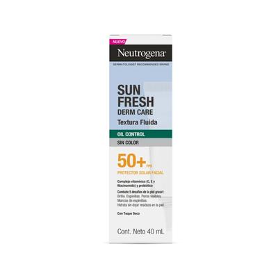 Controla el brillo, domina el sol. La protección invisible que tu piel esperaba: ligera, mate y sin marcas blancas. El protector solar Oil Control Sun Fresh de Neutrogena con FPS 50+ está diseñado específicamente para pieles grasas y con tendencia acneica. Su textura ultrafluida de acabado mate controla el brillo al instante, mientras la tecnología Helioplex SL y la niacinamida protegen contra rayos UV, luz visible y contaminación. Libre de aceites y colorantes, es la protección solar diaria que no obstruye poros.