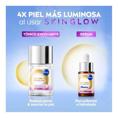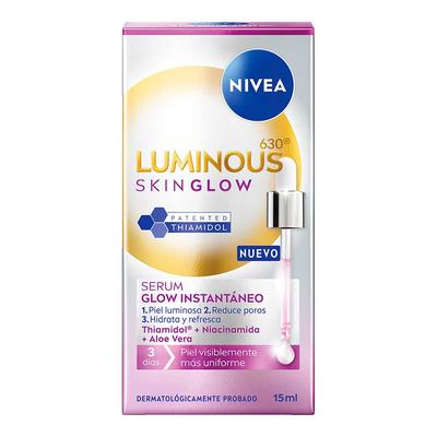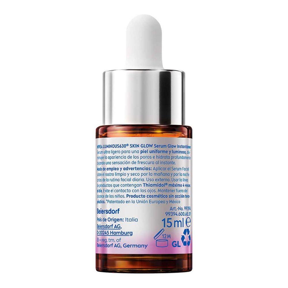 Dale un acabado perfecto a tu piel con el Serum Skin Glow de Nivea y disfruta de su línea Luminous 630° que te brinda un glow instantáneo, su fórmula de triple acción: Unifica el tono de la piel en 3 días y ayuda a reducir manchas en 2 semanas, disminuye la apariencia de los poros y suaviza la piel; y permite una hidratación profunda y sensación de frescura al instante. Piel visiblemente más uniforme.