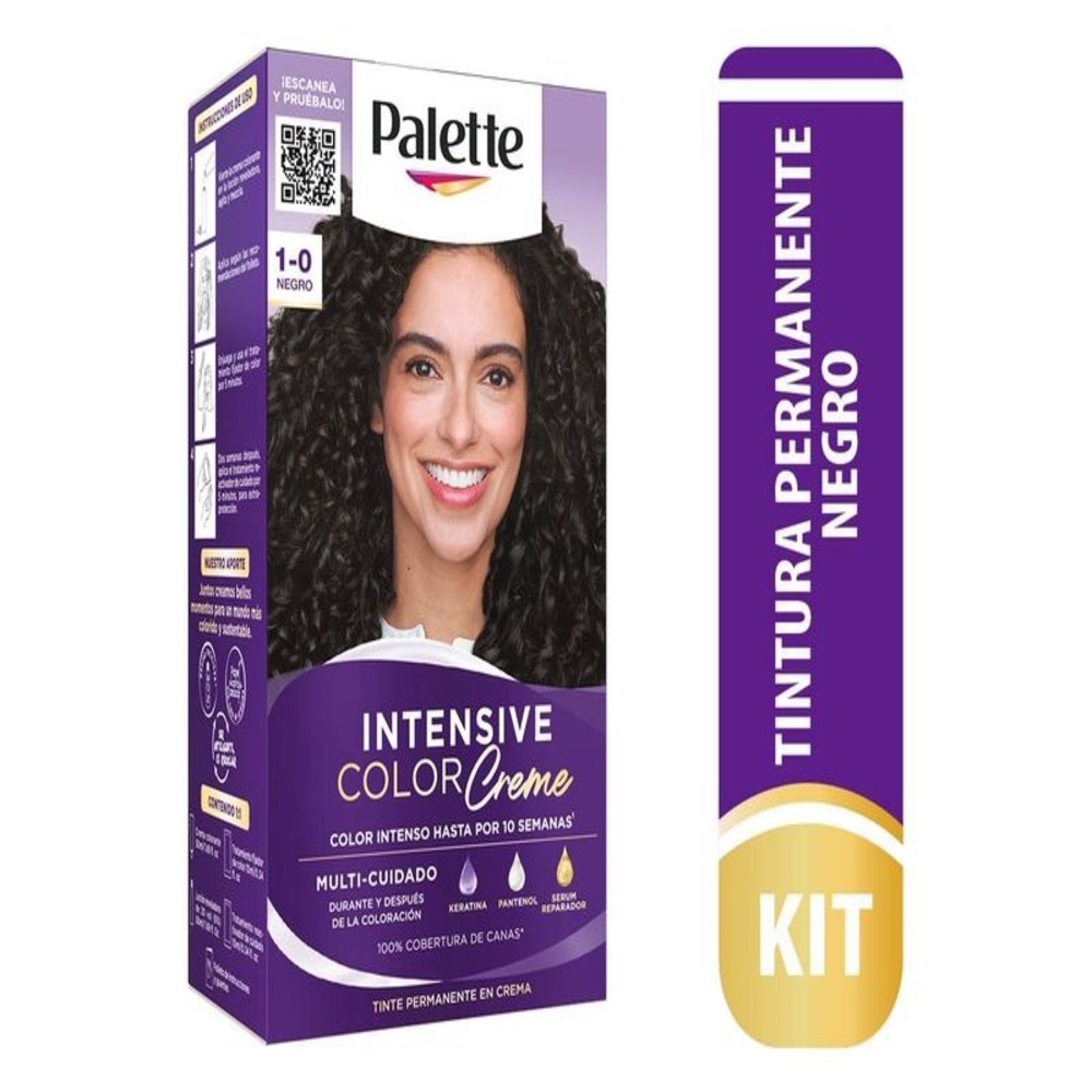 Descubre la tecnología Intensive Color Creme del tinte para cabello en tono negro 1-0 de Palette. Su exclusiva fórmula, 3 veces más cuidado, contiene keratina, pantenol y sérum reparador. Además, te brinda un cuidado profundo en tu cabello, reparándolo y suavizándolo desde el interior.