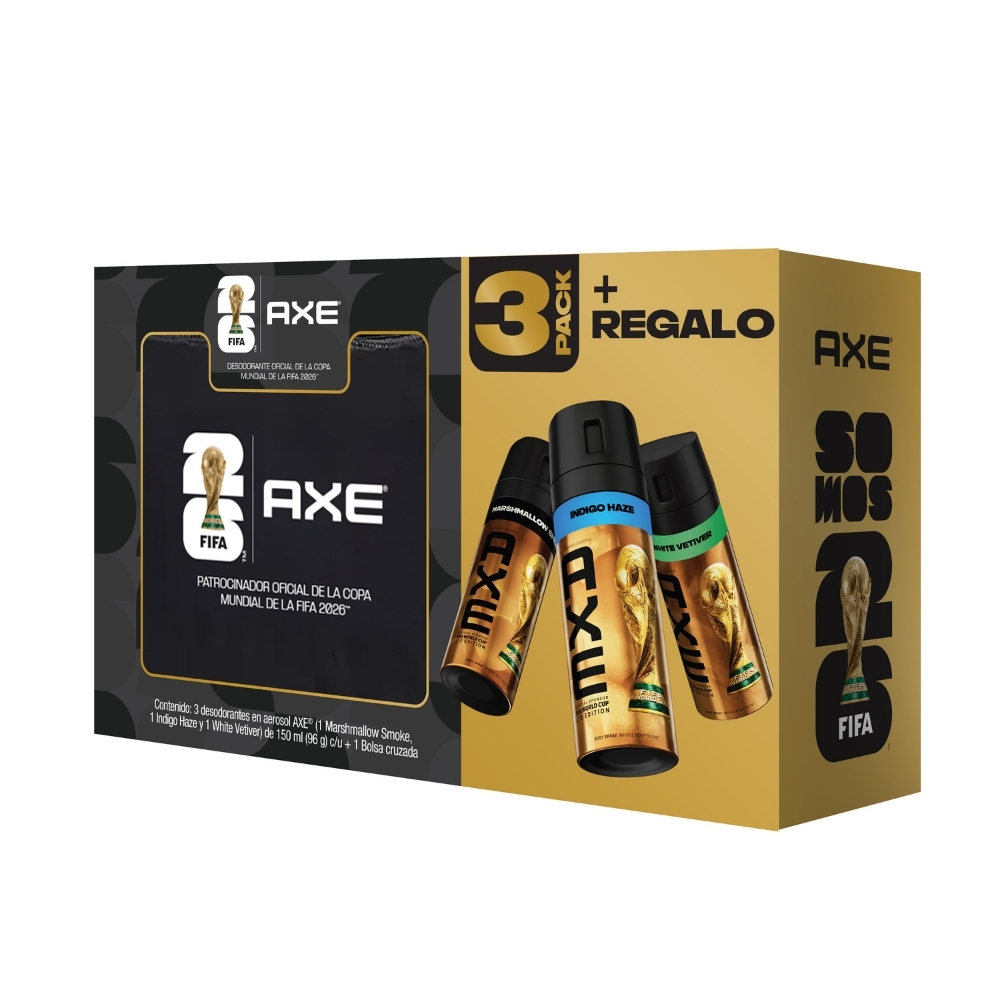 Vive la intensidad del fútbol en cada aplicación con el 3 Pack Edición Especial FIFA World Cup 2026 de Axe. Perfecto para mantenerte fresco y con estilo durante los momentos más emocionantes. Este set exclusivo reúne tres desodorantes con fragancias únicas en aerosol: Marshmallow Smoke, Indigo Haze y White Vetiver. Diseñadas para ofrecerte frescura y protección de larga duración con aromas sofisticados y modernos. Complementa tu rutina de cuidado personal y siente la vibra de la copa de principio a fin sin importar el momento o el lugar.