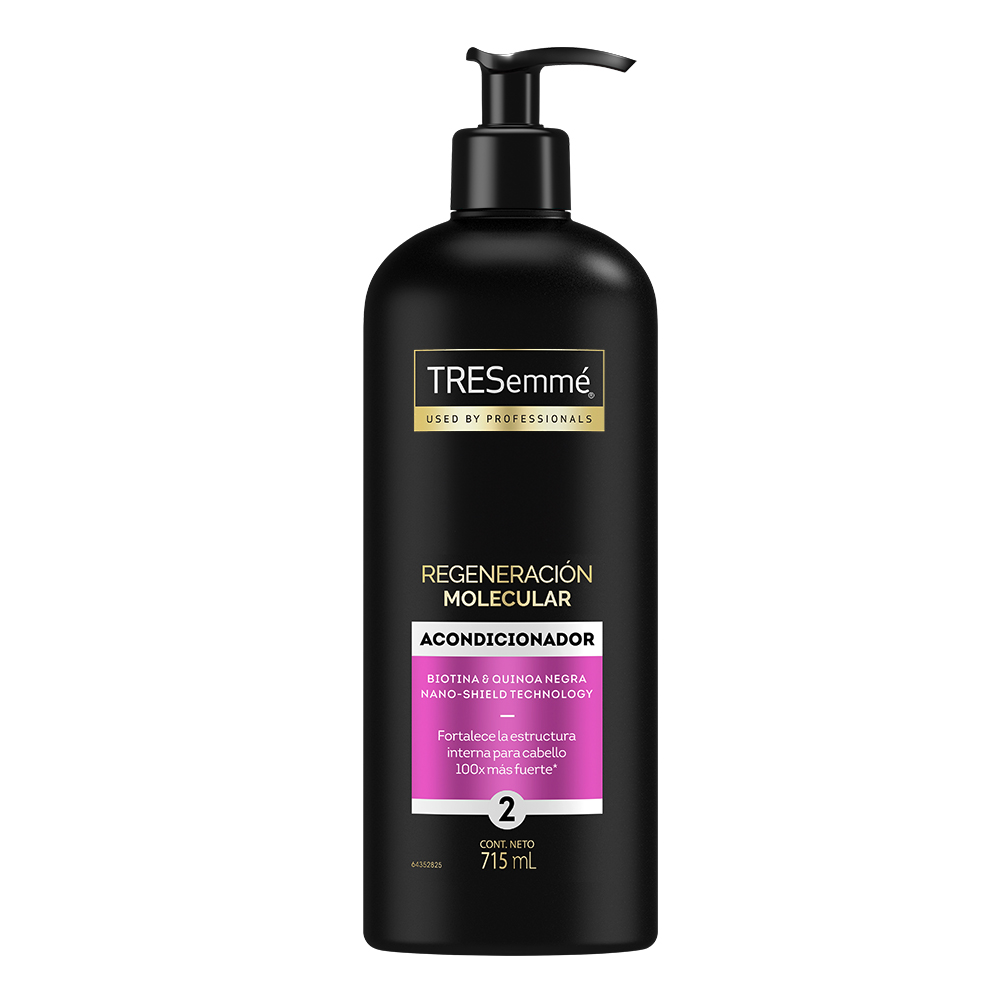 Fortalece la estructura interna de tu cabello con el acondicionador Regeneración Molecular de Tresemmé. Nutre y estimula desde la raíz hasta las puntas con el ingrediente especial de biotina y quínoa negra. Además, mantiene la fibra capilar fuerte reduciendo la caída. Disfruta de su fragancia ideal para restructurar el interior del pelo. Lo refuerza y protege contra los daños externos.