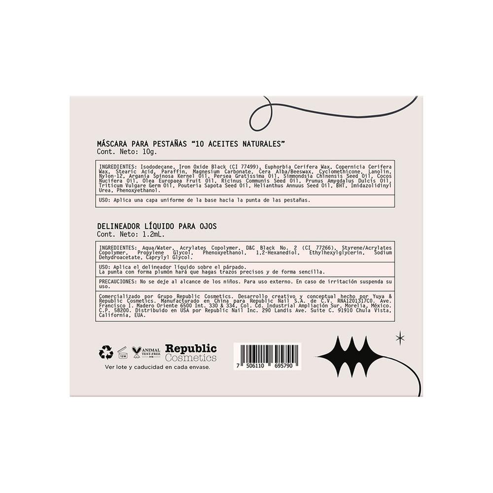 Incluyen: 1 mascara de pestañas y 1 delineador.