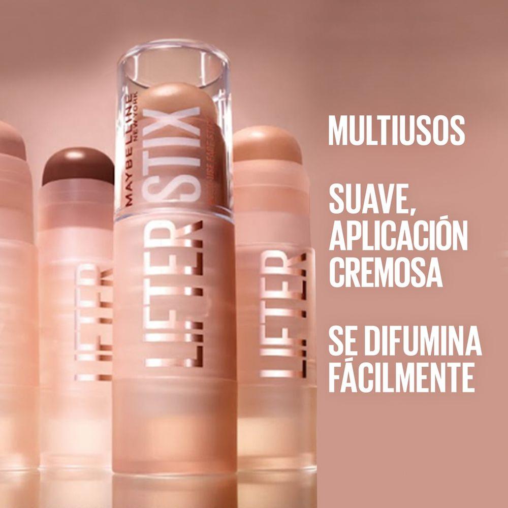 Esculpir y realzar nunca fue tan fácil. Consigue un rostro definido y luminoso con un solo gesto cremoso. El stick multiusos Lifter Stix de Maybelline es una barra cremosa que contornea, cubre e ilumina con una sola pasada. Su fórmula con aceite de semillas de arándano se difumina fácilmente para un acabado natural y esculpido. Ideal para realzar tus facciones sin esfuerzo y lograr un look profesional en segundos.