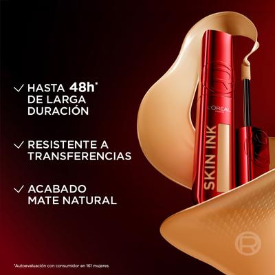 Mantén tu look increíble durante horas con la base de maquillaje Skin Ink de L'Oréal, la revolución 2 en 1: maquillaje y corrector que dura hasta 48 horas. Su fórmula ultraligera es resistente a las manchas, al agua y al sudor, lo que garantiza un maquillaje infalible día y noche, porque tú lo vales.