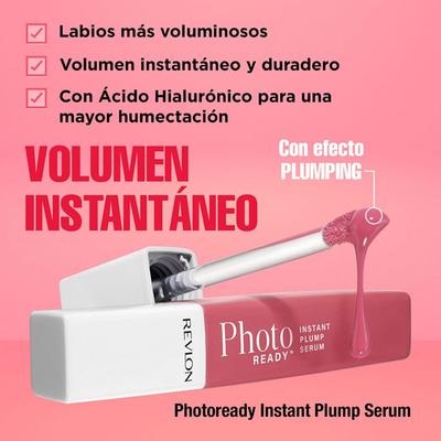 Consigue unos labios instantáneamente más voluminosos y juveniles. El Brillo Labial de Revlon PhotoReady Instant Plump Serum es mucho más que un brillo; es un tratamiento avanzado que suaviza, nutre y humecta profundamente la delicada piel de los labios. Gracias a su innovador complejo Fire & Ice Complex, este suero genera una sensación única de frío y calor que activa la circulación, logrando un efecto de relleno inmediato y un color lleno de vida. Es el secreto para una sonrisa definida, voluminosa y con una textura de seda que se siente tan bien como se ve.