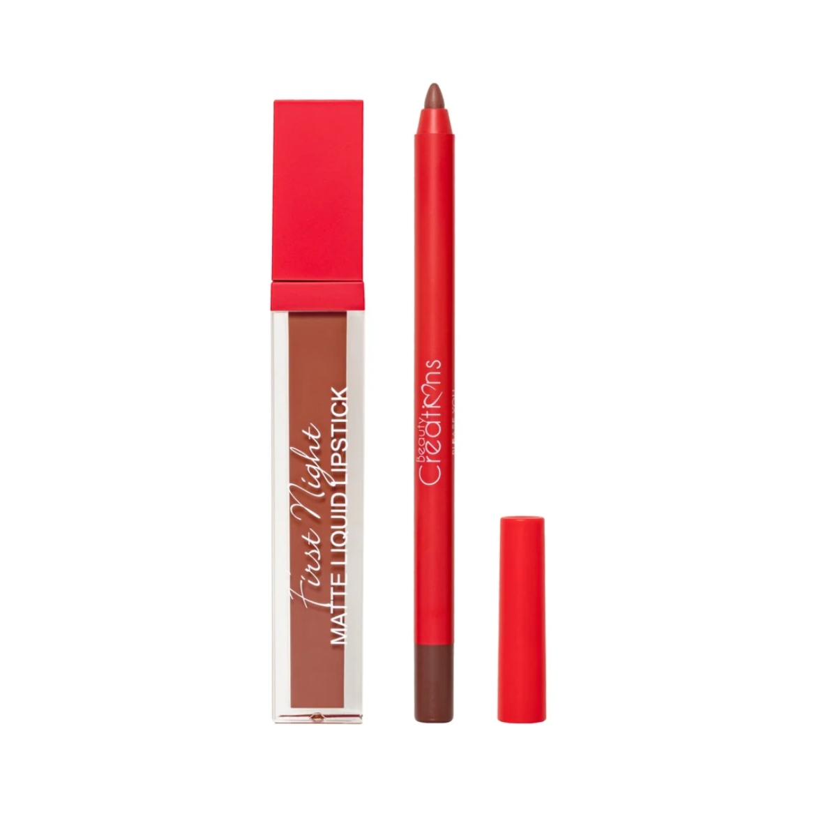 El labial matte líquido en el tono First Night, cuenta con un aplicador suave y de punta semi redondeada que será de gran utilidad para evitar que te salgas del contorno al momento de colocar el producto. Gracias a que ambos son de alta pigmentación, no tendrás que retocarlo tan seguido.
