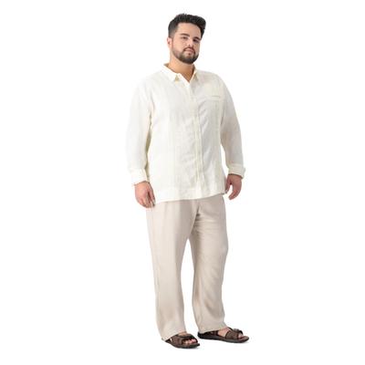 Guayabera Ixnah Hombre Manga Larga Alforzas Delanteras