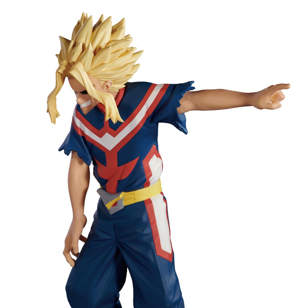 Agrega a tu colección la espectacular figura Banpresto de All Might (True Form). Su diseño tipo estatuilla refleja a la perfección las facciones y apariencia del icónico personaje en el anime My Hero Academia. Tiene un nivel de detalle de calidad premium y pose estática con sensación de movimiento para que luzca en el lugar que quieras y admirar aún más sus aventuras.