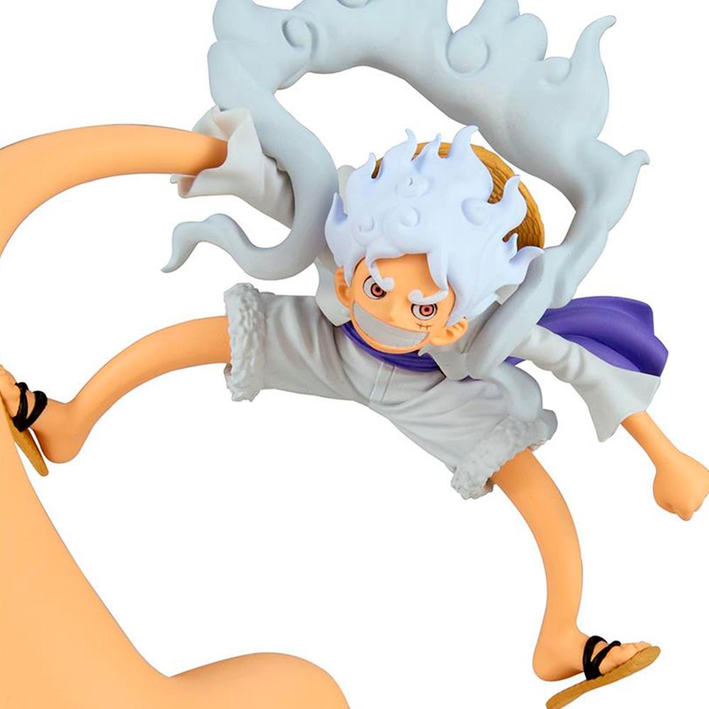 Agrega a tu colección la espectacular figura Banpresto de Monkey D. Luffy Gear 5 (Vol.4). Su diseño tipo estatuilla refleja a la perfección las facciones y apariencia del icónico personaje en el anime One Piece. Tiene un nivel de detalle de calidad premium y pose estática con sensación de movimiento para que luzca en el lugar que quieras y admirar aún más sus aventuras.