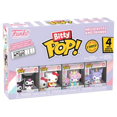 Tus Funko favoritos del adorable mundo de Sanrio se han encogido en coleccionables Bitty Pop! Vive una fantástica aventura con los personajes más queridos de Hello Kitty and Friends y descubre nuevas sorpresas. Este paquete incluye cuatro piezas y vienen en estuches de acrílico duro con desmontables tapas inferiores, que también funcionan como bases a las que se adhieren las figuras.