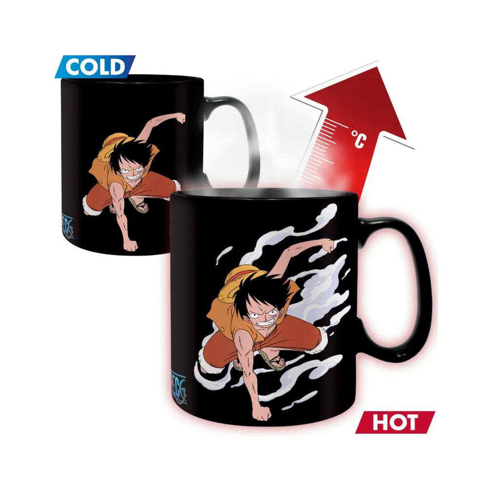 Descubre la taza con cambio de calor de One Piece. Con este modelo térmico de Abystyle, Luffy y Ace desatan sus poderes cuando la llenas con una bebida caliente. Además, te brinda una gran capacidad de 460 ml. Está fabricada de material duradero y viene en una caja con ventana transparente, lista para exhibir o coleccionar.