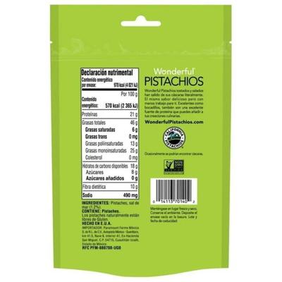 Disfruta un snack saludable y delicioso con los pistaches Wonderful tostados con sal de la marca Pistachios, en su presentación de 170 g y sin cáscara. Cosechados en su punto ideal, son cuidadosamente tostados para resaltar su sabor natural y sazonados con el toque justo de sal. Perfectos para satisfacer antojos entre comidas, acompañar bebidas o como opción energética durante el día