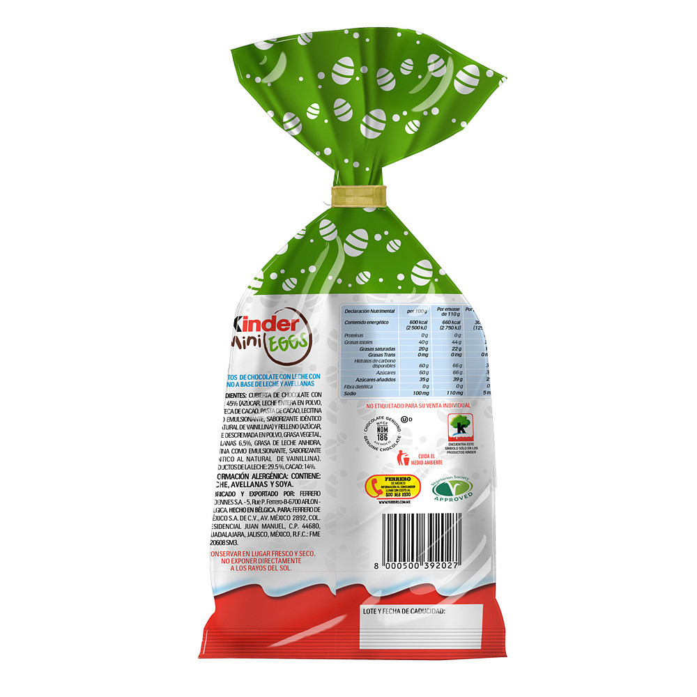Disfruta la suavidad y el sabor inconfundible de los chocolates con Leche de la marca Kinder. Cada pieza está cuidadosamente elaborada con el más rico chocolate con leche, ofreciendo una experiencia indulgente y cremosa. Su tamaño mini y su divertido empaque la hacen ideal para regalar en ocasiones especiales o disfrutar en momentos de recreación.