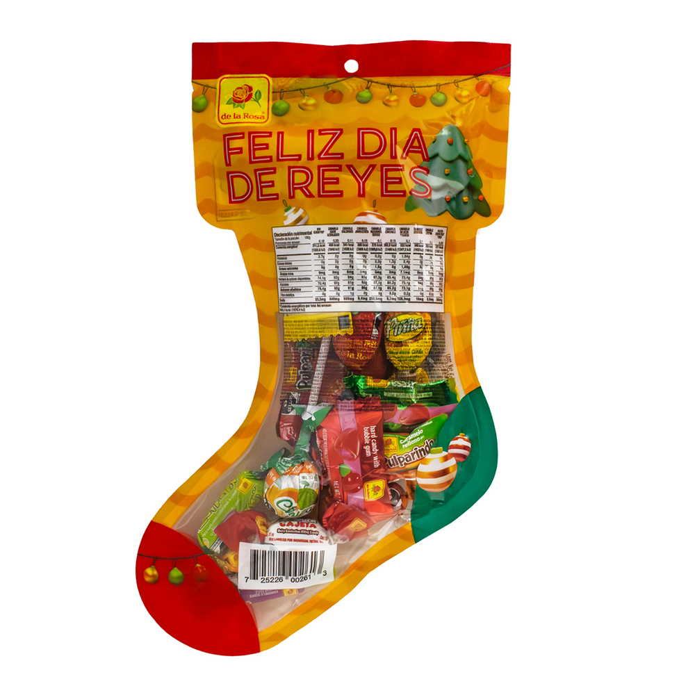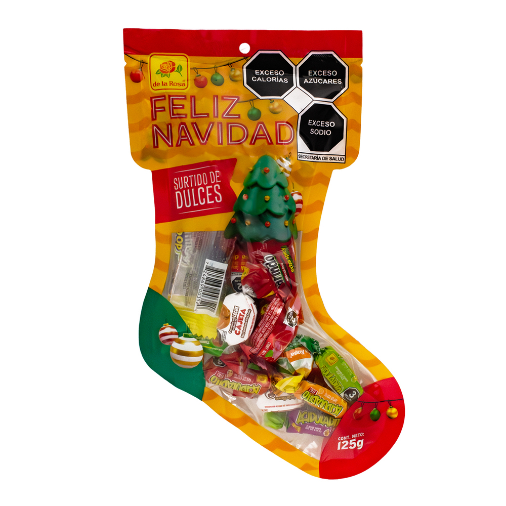 Encuentra la magia de la navidad en la bota de dulces De la Rosa y disfruta de su presentación de 125 g contiene ricos dulces surtidos, como caramelos y chiclosos, para compartir y disfrutar durante esta temporada. Además, es un tradicional obsequio que no puede faltar debajo de tu árbol en las fiestas de fin de año o el día de los reyes magos.