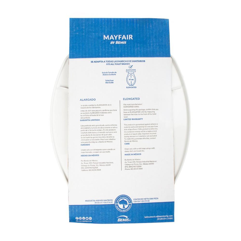 Renueva tu baño con el asiento para sanitario de Mayfair. Tiene un alargado diseño y ajustables bisagras que garantizan un perfecto calce en todas las marcas de sanitarios. Su frente abierto con tapa te ofrece comodidad y practicidad en cada uso. Fabricado de plástico de alta calidad, este modelo en un elegante color blanco no solo es resistente, sino también amigable con el medio ambiente.