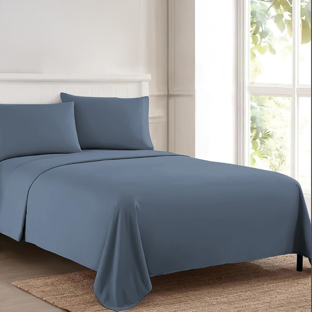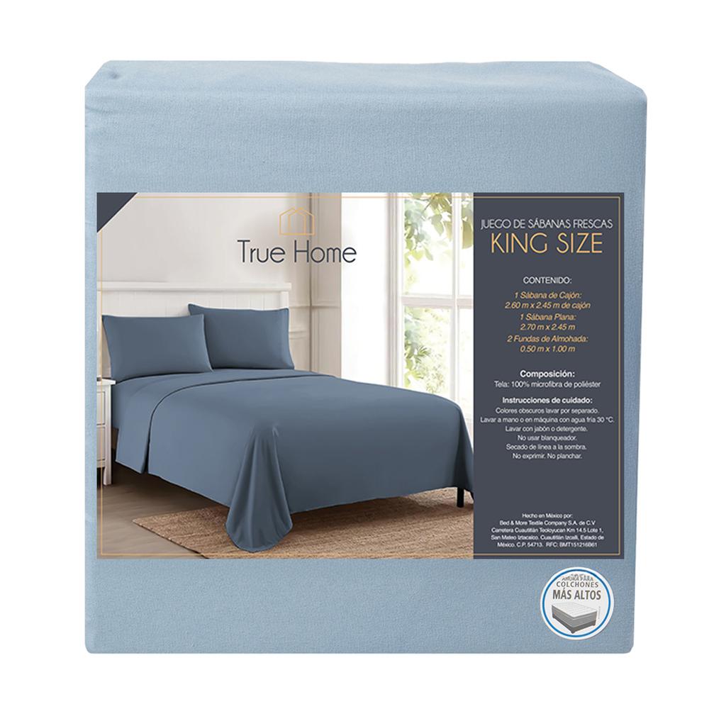 Descubre el lujo del descanso con el juego de sábanas frescas True Home. Elaborado con 100% microfibra de poliéster, está diseñado para colchones de perfiles altos. Incluye una sábana de cajón, sábana plana y dos fundas de almohada que te ofrecen confort y elegancia en cada detalle. Este modelo king size en color plumbago es la elección perfecta para transformar tu dormitorio en un espacio acogedor y de tranquilidad.