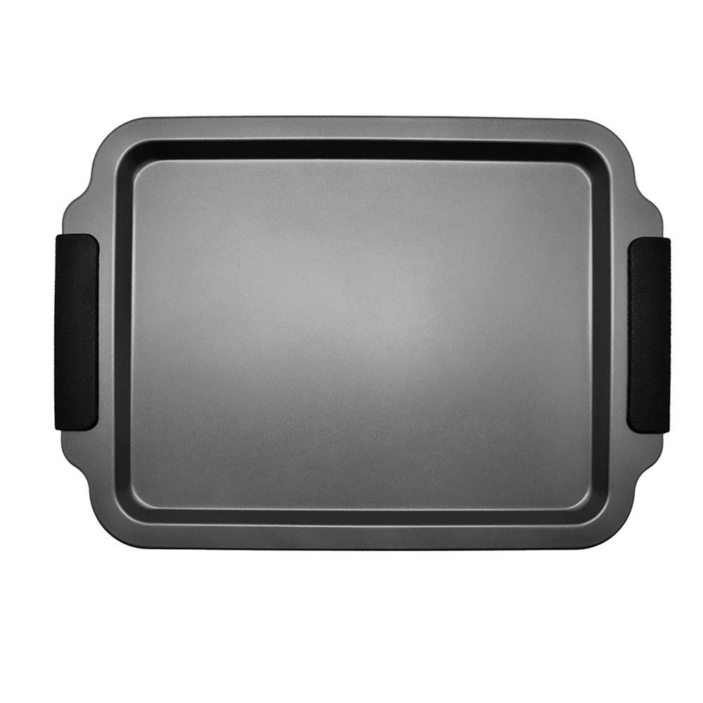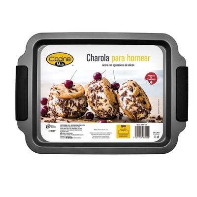 Lleva tu repostería al siguiente nivel con la charola Cocina Mía, fabricada de acero con agarraderas de silicona. No existen límites para lo que crearás con este versátil utensilio, desde tradicionales platillos hasta postres y galletas. Disfruta de la facilidad de horneado y limpieza que te ofrece este rectangular modelo de calidad superior. ¡Tu familia quedará encantada con deliciosas recetas!