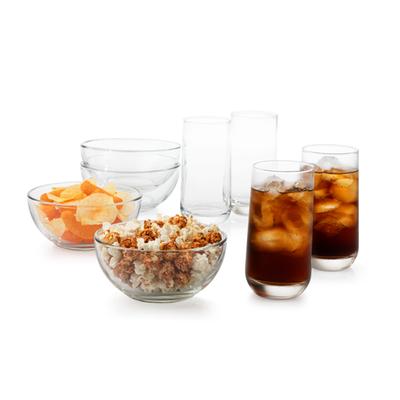 Brinda con clase y disfruta tus botanas predilectas con el juego de servicio Koba de Libbey. Es perfecto para agregar todo el estilo a tus reuniones, fiestas o eventos. Este conjunto de ocho piezas te ofrece vasos altos y tazones redondos. Además, tiene un elegante diseño elaborado de vidrio sólido que garantiza una alta durabilidad y claridad.
