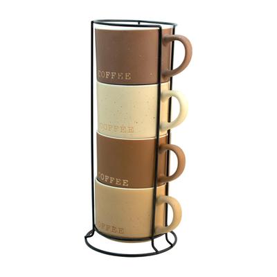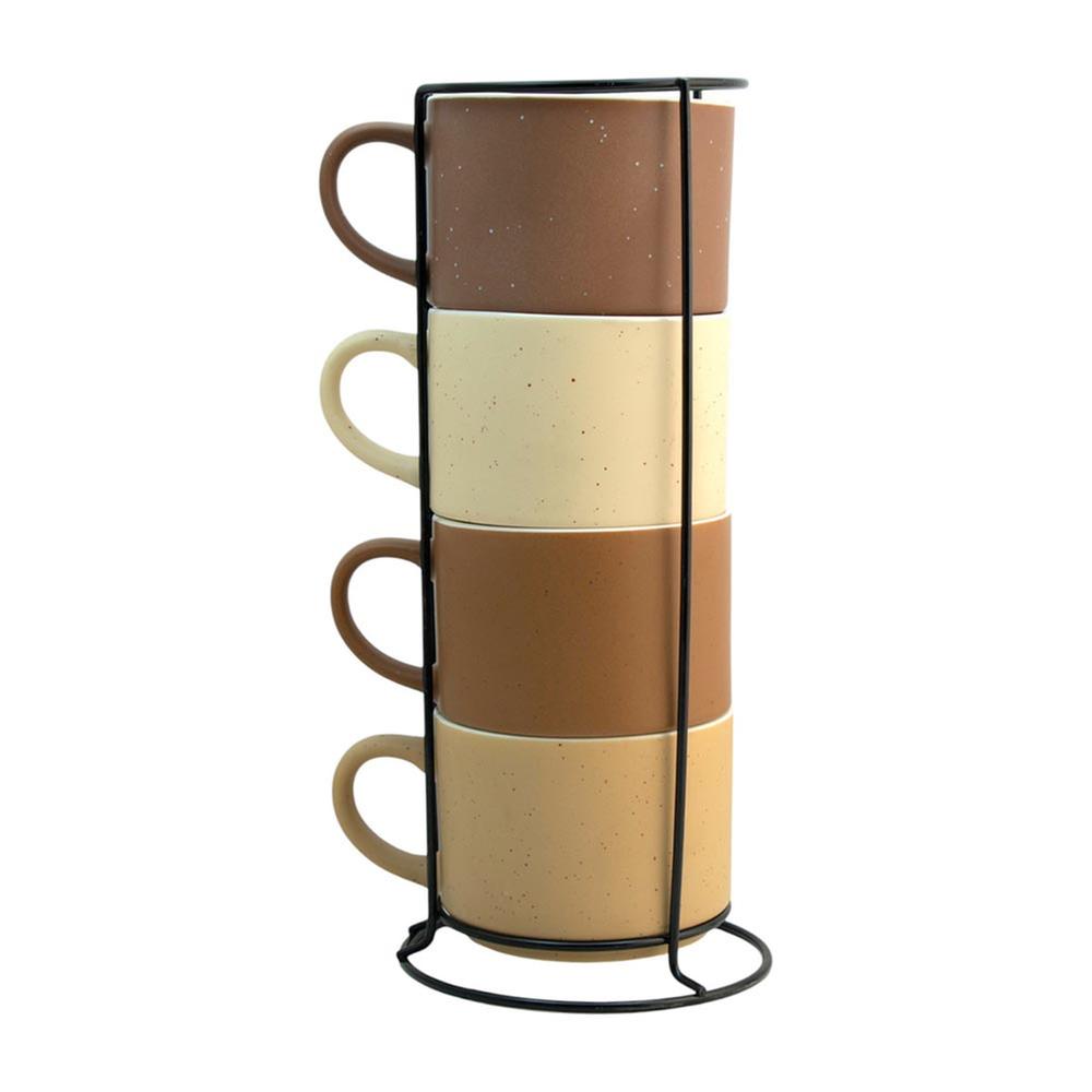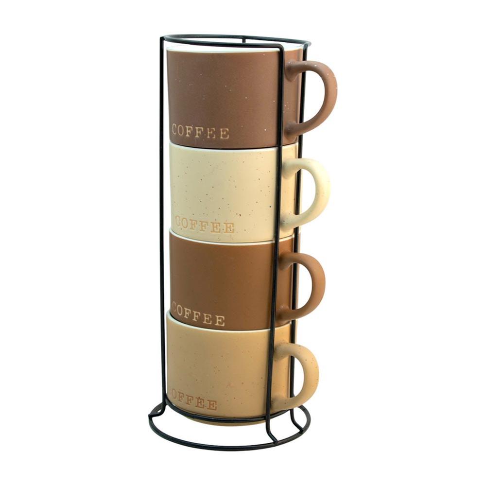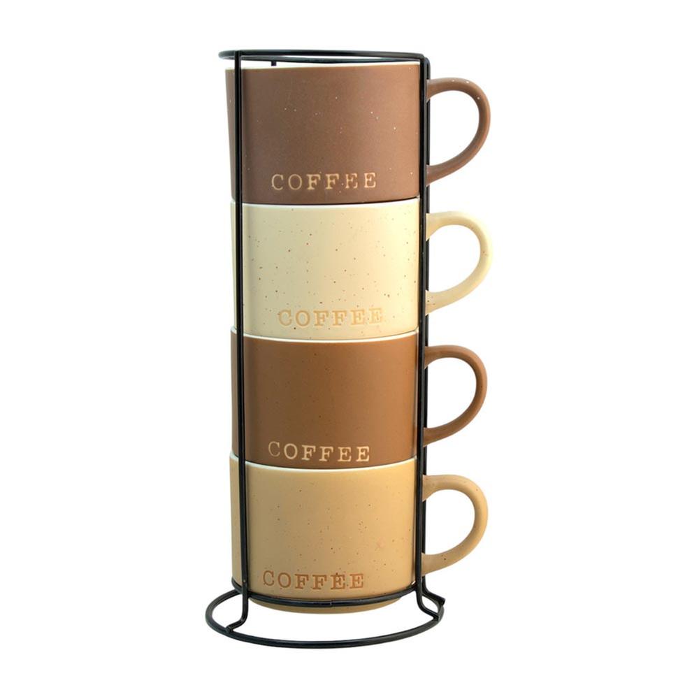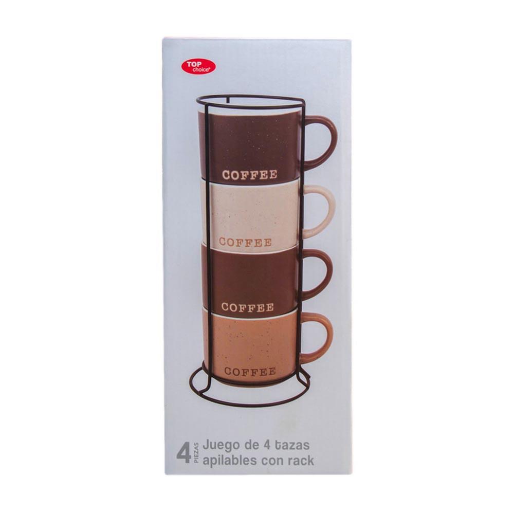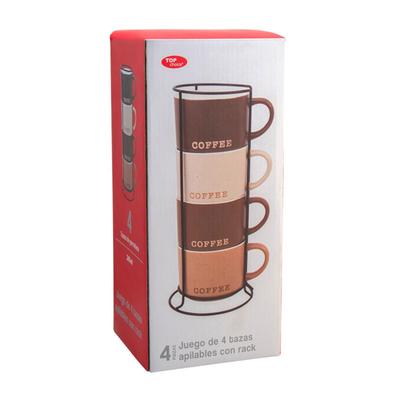 Atributos: Exclusivo juego de tazas Añade un elegante toque a tus momentos de tomar café Capacidad: 340 ml Con rack para optimizar espacio y aportar un moderno diseño Fabricadas de duradero material Ideal para cualquier tipo de decoración en la cocina u oficina Práctico diseño apilable