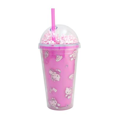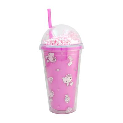 Dale un toque de entretenimiento a tus bebidas con el vaso Fun Kids de doble pared. Su diseño de cúpula con tapa de domo y popote lo hacen práctico y original. Las bolitas de colores le dan un aspecto único y llamativo que te enamorará. Úsalo en casa, el trabajo o como un elemento decorativo. ¡No pierdas la oportunidad de tener este exclusivo diseño de Hello Kitty en tus manos!
