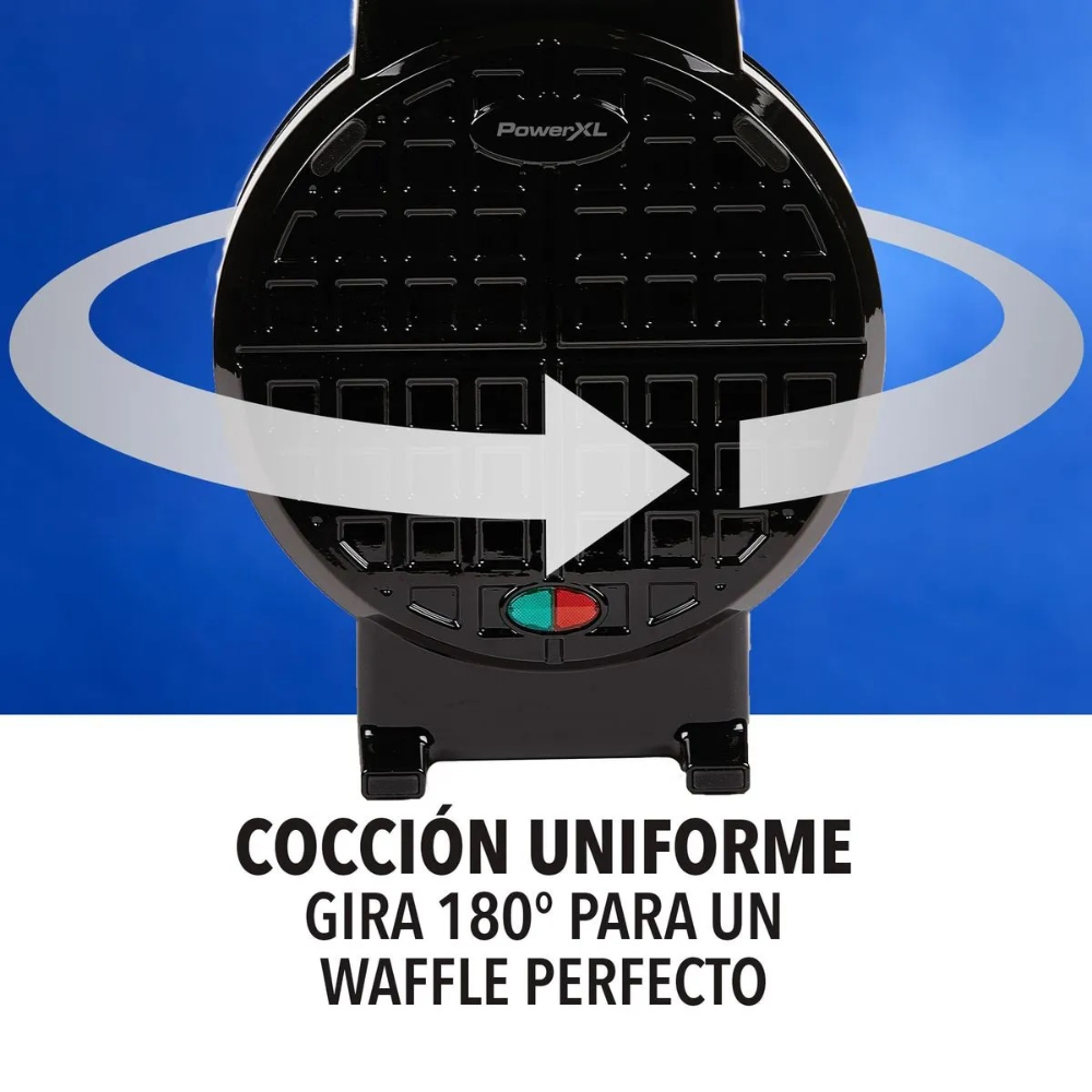 ¿Eres amante de los wafles rellenos? Entonces la waflera PowerXL es para ti. Prepárate para disfrutar wafles belgas de 5 cm de grosor con la combinación de ingredientes que prefieras, tanto dulces como salados. Su antiadherente recubrimiento facilita la limpieza, mientras que su diseño con canal de desborde evita derrames al cocinar. Con 1000 watts de potencia y giro de 180°, este modelo en color negro garantiza una cocción uniforme y deliciosa. Además, su fácil almacenamiento vertical te permite ahorrar espacio en la cocina.