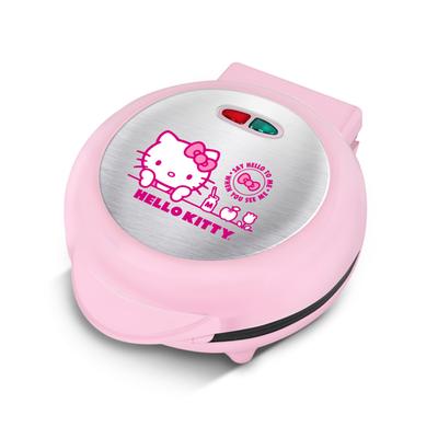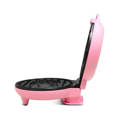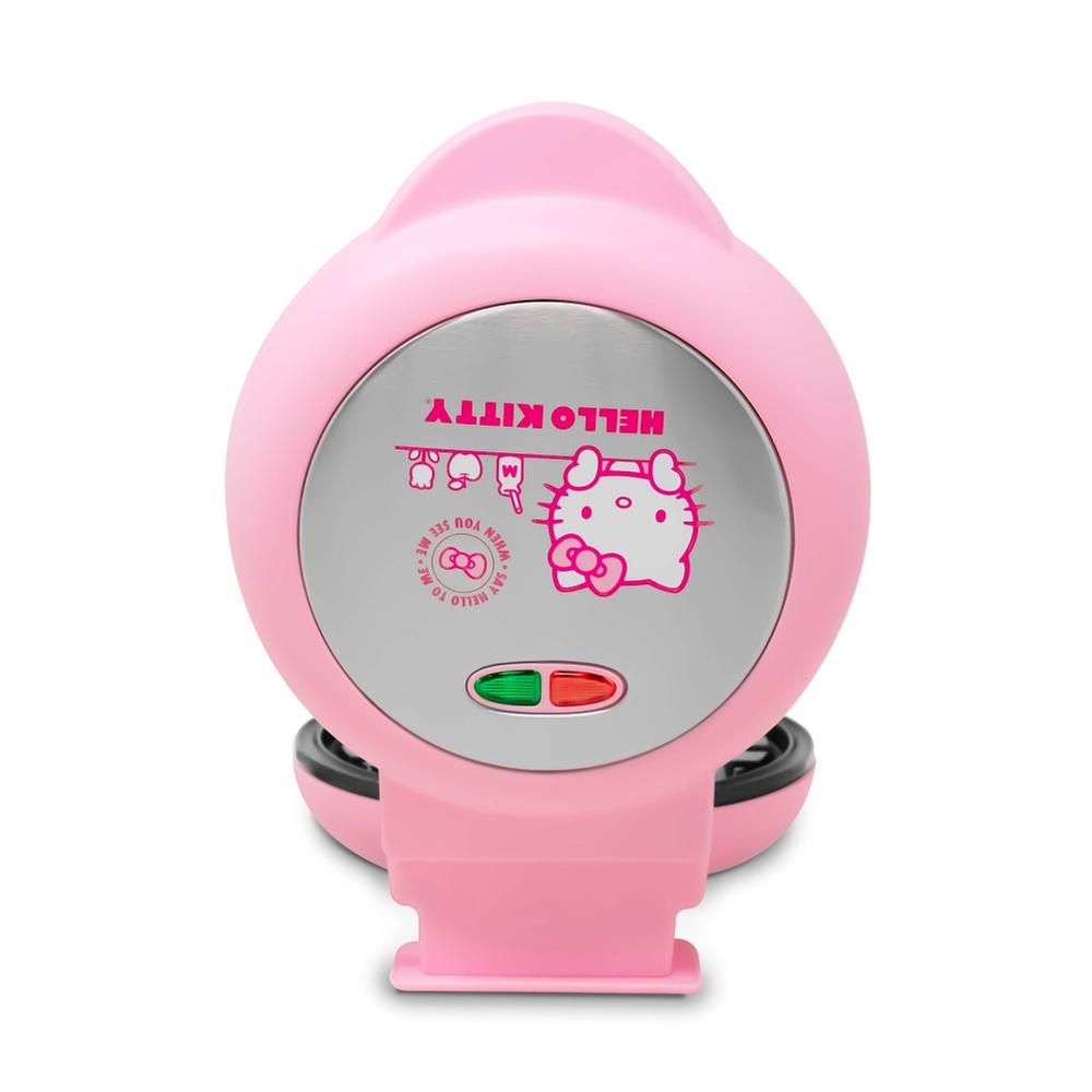 La waflera eléctrica RCA es el electrodoméstico perfecto para los amantes de Hello Kitty. Con placas antiadherentes de 18 cm de diámetro y diseño del personaje de Sanrio en su interior, este modelo en color rosa combina practicidad y estilo de una manera única. Sus luces indicadoras y asa fría al tacto garantizan un uso seguro y fácil. Además, la facilidad de limpieza la vuelve una excelente opción para cualquier cocina.
