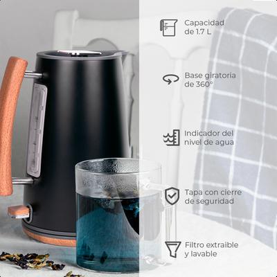 Descubre el hervidor eléctrico Daewoo, el compañero idóneo para tu ritual diario. Con diseño y funcionalidad en uno solo, este modelo en color negro de 1.7 litros te ofrece comodidad y estilo en cada uso. Su base giratoria de 360° y resistencia de acero inoxidable garantizan un uso fácil y duradero. La protección contra el sobrecalentamiento, apagado automático y tapa con cierre seguro priorizan tu seguridad en todo momento. Con indicador del nivel de agua y filtro extraíble y lavable, preparar té o tus bebidas preferidas nunca había sido tan intuitivo y conveniente.