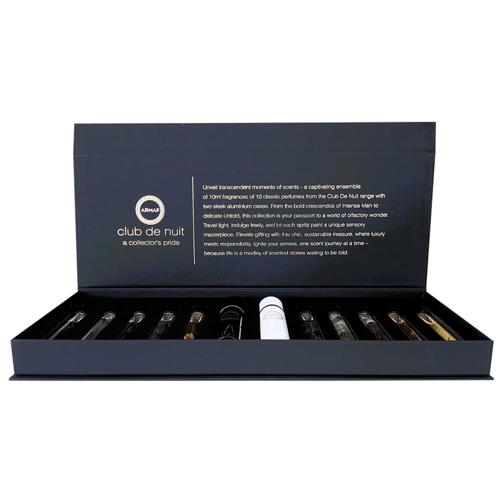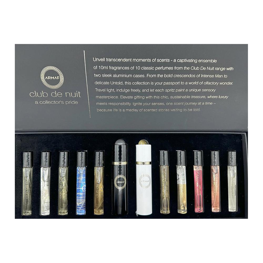 El Set Armaf Club De Nuit Miniaturas 12 Piezas es una colección de fragancias en formato miniatura, diseñada para quienes desean probar diferentes aromas o para coleccionistas. Cada miniatura permite disfrutar de la fragancia en pequeñas dosis sin comprometer su intensidad. Las notas de salida combinan durazno, flor del cerezo y manzana roja, mientras que el corazón integra lila, jazmín y lirio de los valles. El fondo de almizcle, tamarindo y maderas blancas aporta calidez y duración, ofreciendo una experiencia aromática completa en cada uso.