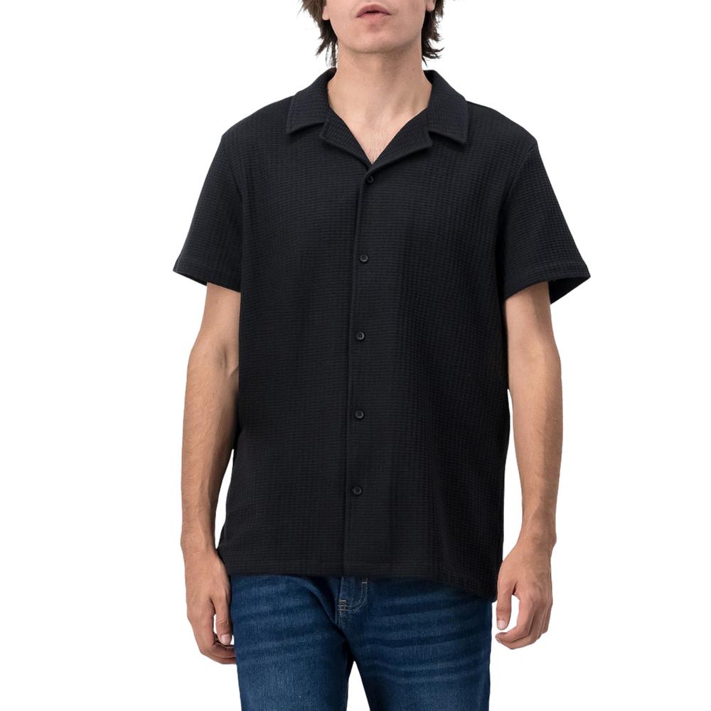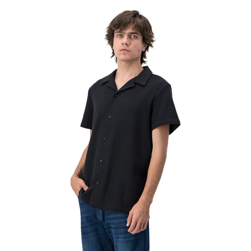 Camisa Hummo Hombre Manga Corta Tipo Tejido Negra