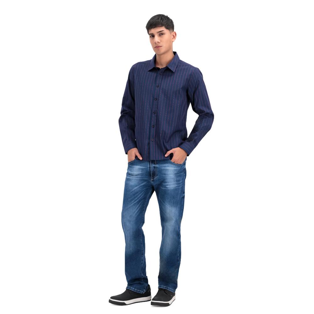 Camisa Hummo Hombre Manga Larga Rayas En Contraste