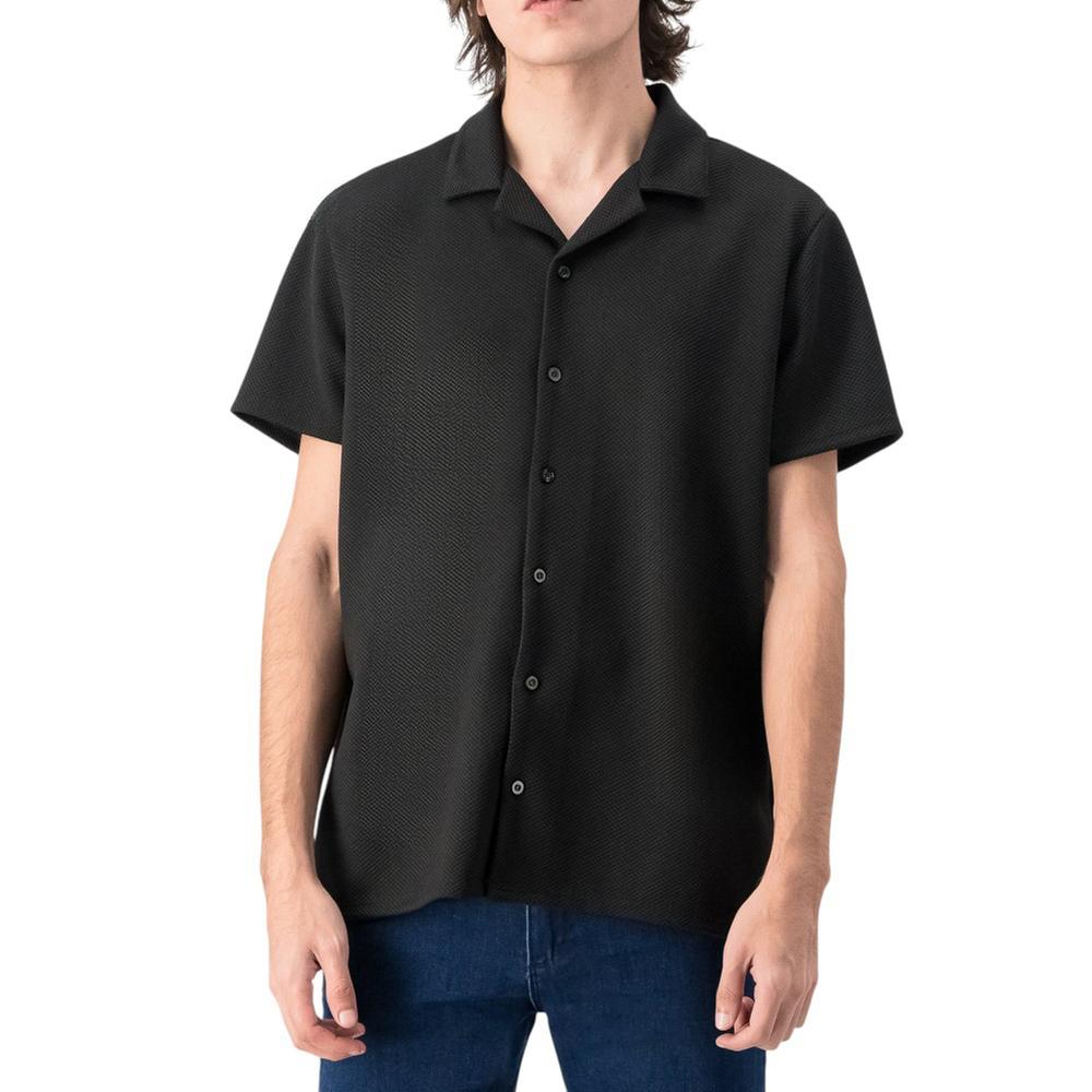 Camisa waffle de hombre negra de manga corta, perfecta para un look casual y cómodo en cualquier ocasión.
