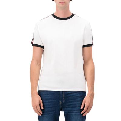 Esta playera para hombre combina un diseño liso clásico con detalles modernos que marcan la diferencia, como las franjas en contraste sobre los hombros y los puños y cuello en contraste. Estas características le dan un toque sofisticado y dinámico, ideal para un look casual con estilo y comodidad.