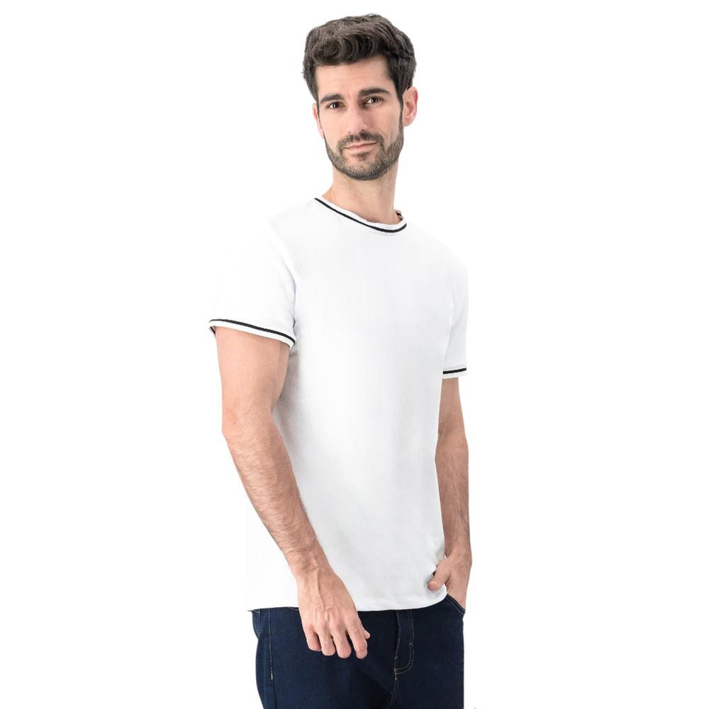 Playera Hummo Hombre Lisa Blanca Detalle Negro En Cuello Y Mangas