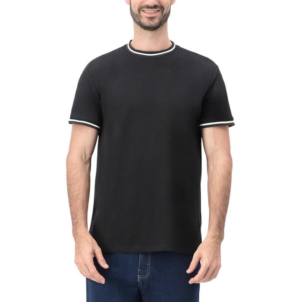 Playera Hummo Hombre Lisa Negra Detalle Blanco En Cuello Y Mangas