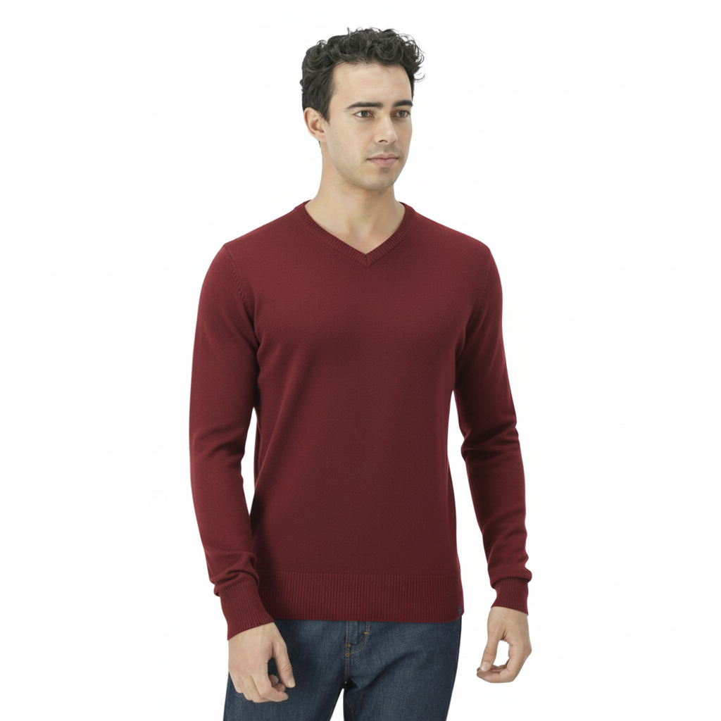 Suéter liso con cuello en V que aporta un estilo moderno y elegante. Su diseño estiliza la silueta y permite combinarlo con camisas o usarlo solo para un look relajado. El material cómodo y resistente brinda abrigo sin sacrificar libertad de movimiento, ideal para quienes buscan una prenda versátil, funcional y con excelente presentación.