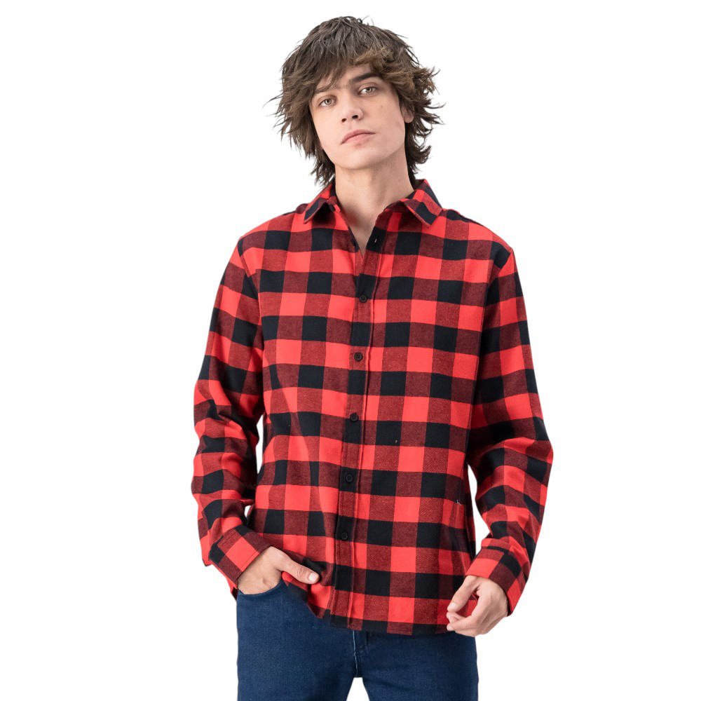 Camisa De Franela Hummo Hombre Diseño De Cuadros Rojo