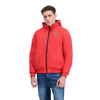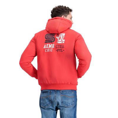 Atributos: Capucha con jareta. Bolsa en brazo con cierre. Estampado en espalda. Doble vista con ajuste en puños y ruedo.