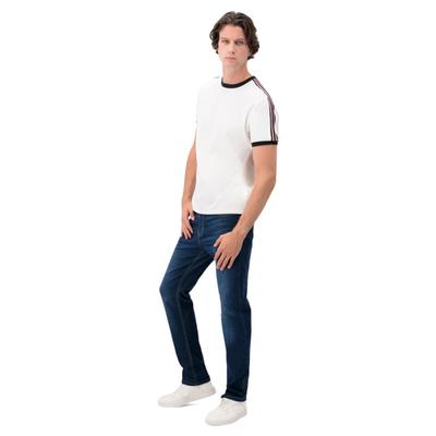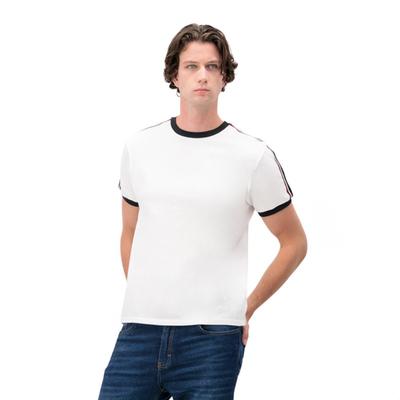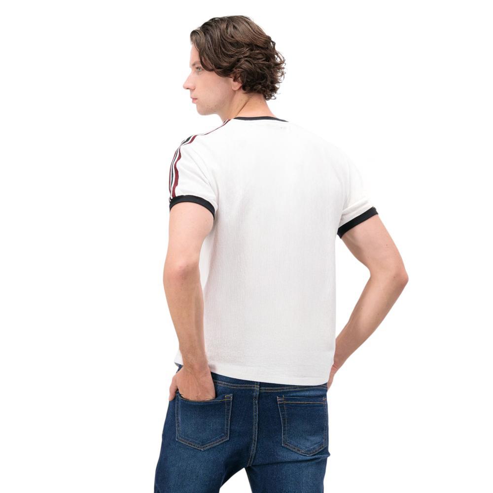 Esta playera para hombre combina un diseño liso clásico con detalles modernos que marcan la diferencia, como las franjas en contraste sobre los hombros y los puños y cuello en contraste. Estas características le dan un toque sofisticado y dinámico, ideal para un look casual con estilo y comodidad.