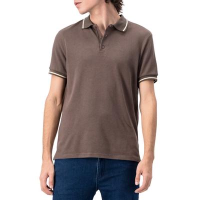 Playera Polo Hummo Hombre Casual Café Líneas en Contraste Blancas