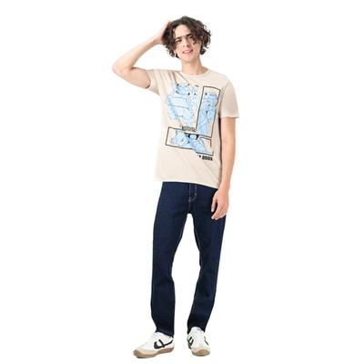 Playera para hombre de manga corta con cuello redondo y estampado frontal, ideal para un look casual y moderno en cualquier ocasión. Su corte cómodo permite libertad de movimiento y frescura durante todo el día, mientras que el estampado añade un toque de estilo distintivo. Perfecta para combinar con jeans o pantalones casuales.