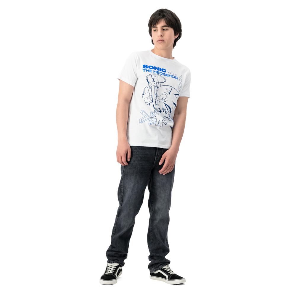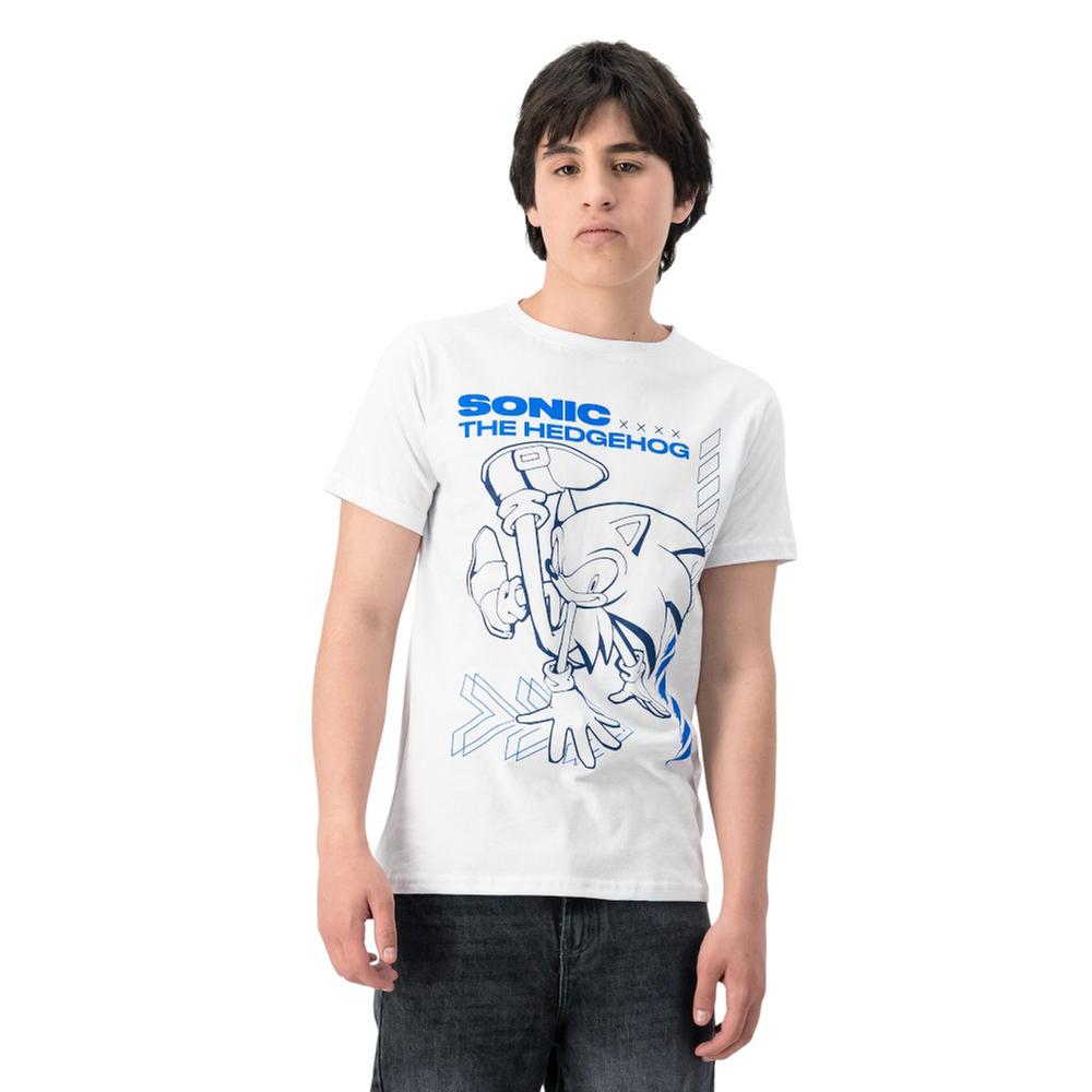 Playera con estampado frontal de Sonic en líneas dinámicas, ideal para un estilo juvenil y casual Confeccionada en algodón ligero, ofrece transpirabilidad, comodidad y facilidad para combinar con pantalones o shorts