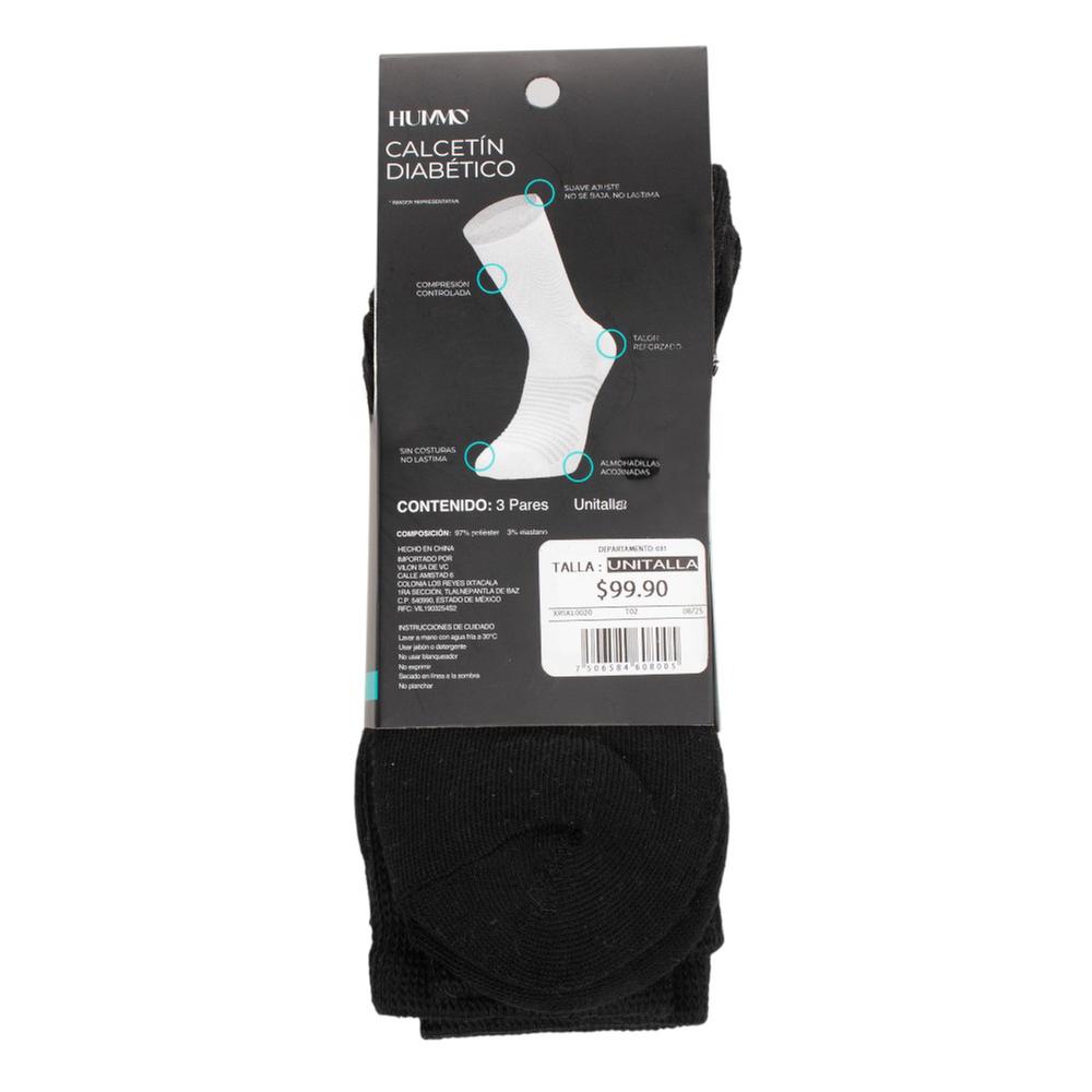 El pack de 3 calcetines para hombre combina funcionalidad y confort con un diseño liso y sin costuras en la punta para evitar rozaduras incómodas. Su compresión controlada y talón reforzado ofrecen soporte adicional, siendo ideales para personas con diabetes que buscan cuidado y protección en cada paso.